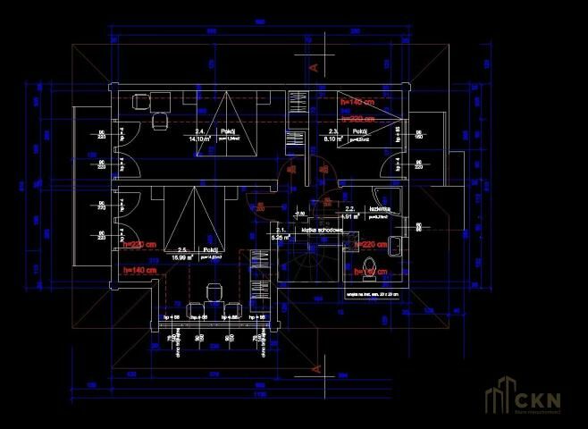 PODDASZE UŻYTKOWE: trzy sypialnie z wyjściami na balkony, łazienka, hall.